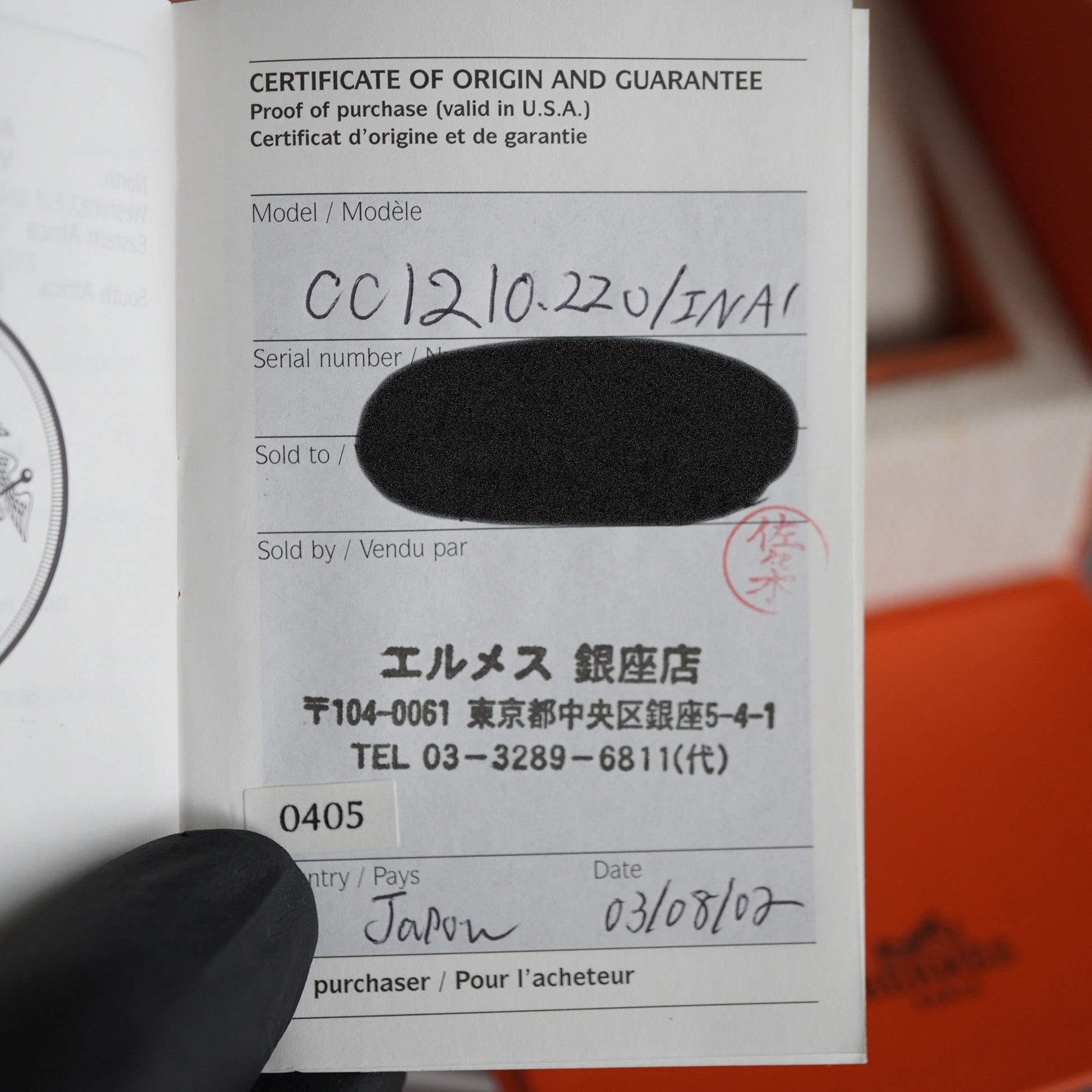 Box / Papers : Box, Warranty Card from Hermes Ginza