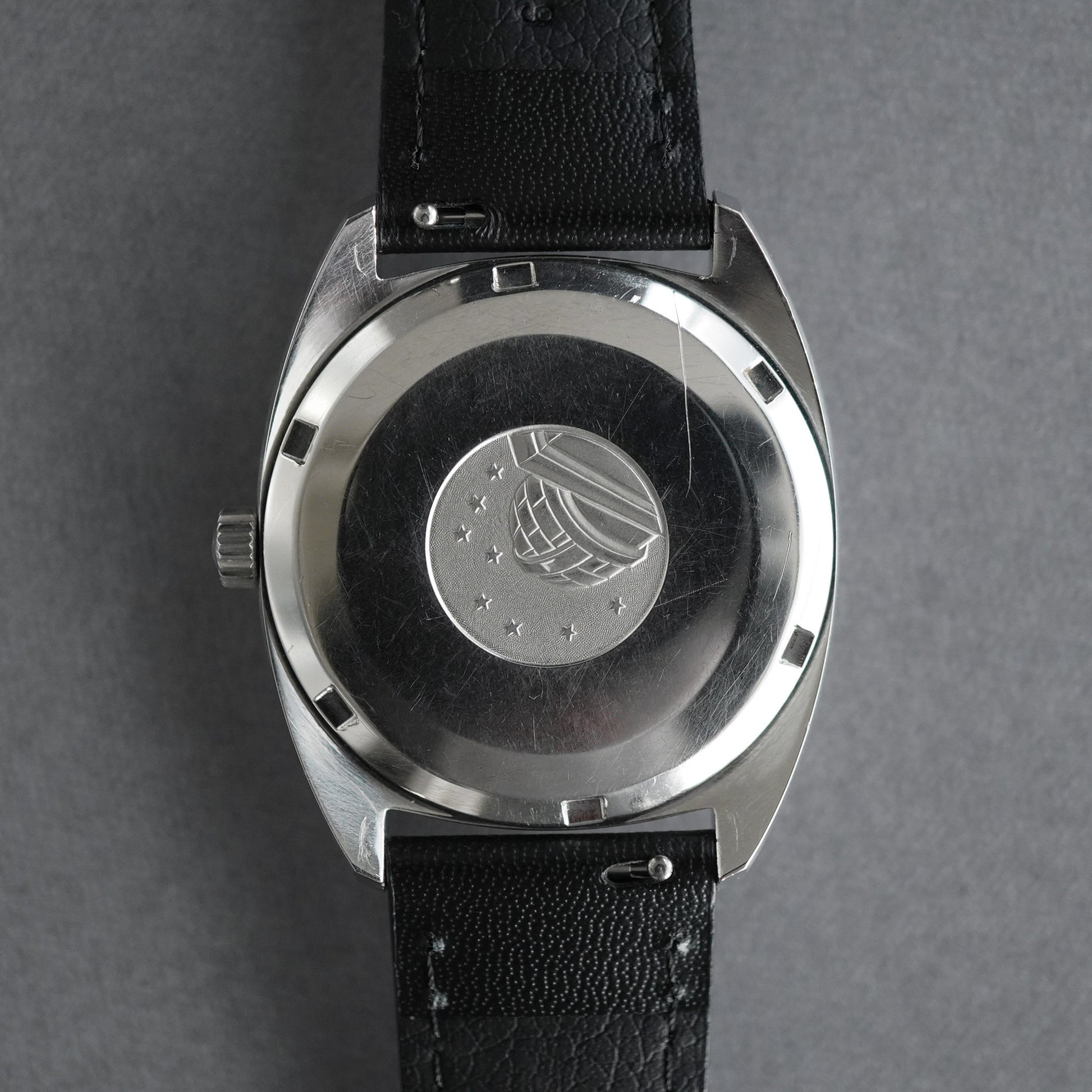 The watch is in relatively clean condition with some scratches and deterioration due to age.