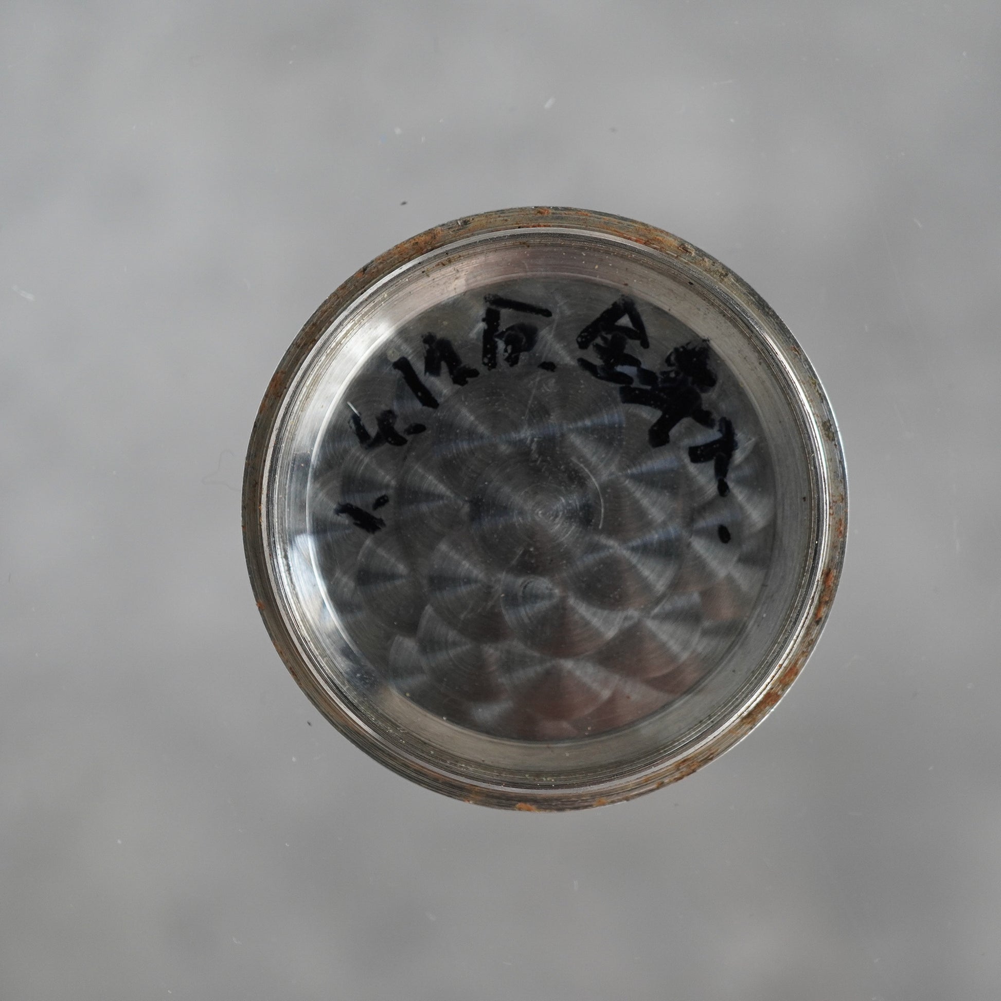The engraving on the back cover is faded.